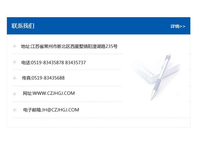 地址:常州市新北區友邦商務大廈1幢16、17層  電話:0519-85101652  傳真:0519-85112595  郵編:213022  網址:www_cz-jiayue_cn.htwy119.com  郵箱:xiajifengaa@163.com
